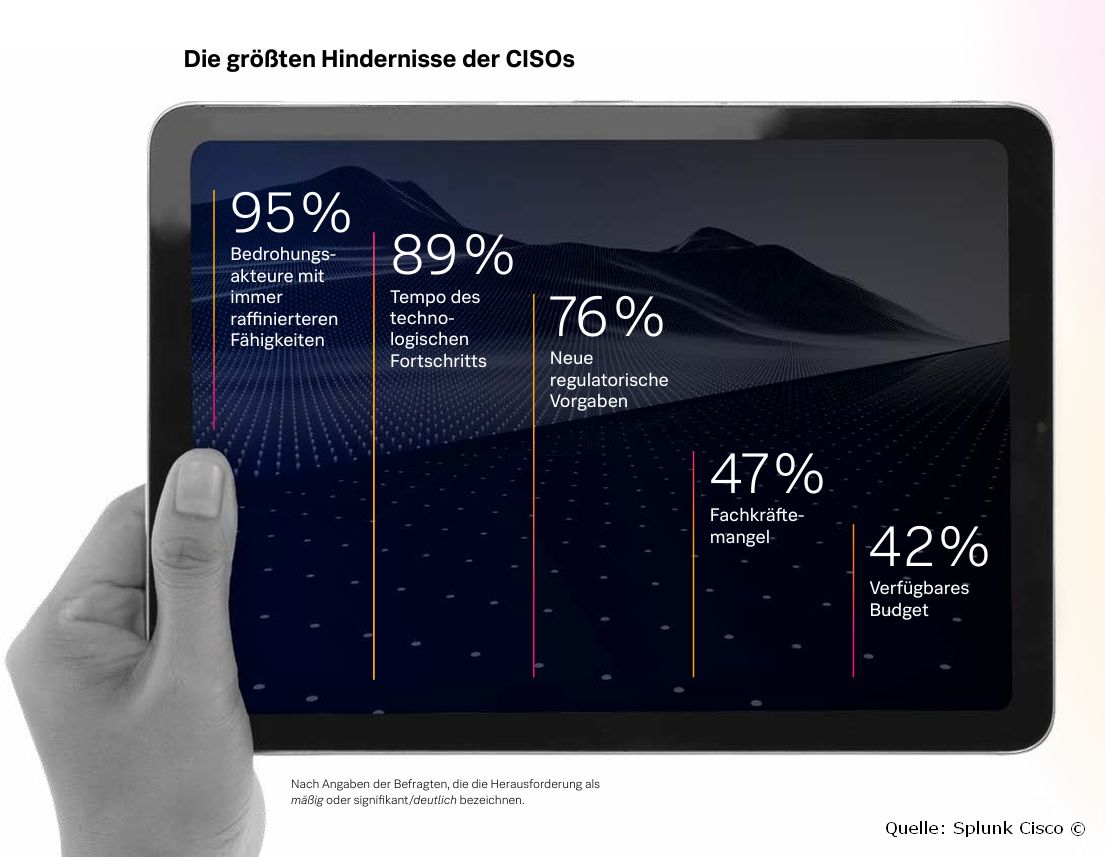 »CISOs befinden sich im Zentrum ständiger Veränderung. Ihre Aufgabenbereiche werden immer komplexer, die Bedrohungen entwickeln sich weiter und durch KI wird alles noch beschleunigt«, sagt Juan Perea Rodríguez, Deutschland-Chef beim Cisco-Unternehmen Splunk. »Diese Erweiterungen des Aufgabengebiets bringen enormen Druck und eine große persönliche Verantwortung mit sich. CISOs managen nicht nur Technologien, sondern auch Risiken, Fachkräfte und letztlich die digitale Resilienz.«