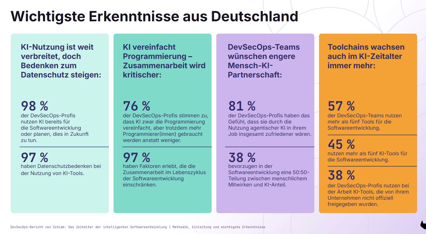 »Die Studie zeigt, was wir als KI-Paradox bezeichnen: Die Code-Erstellung gelingt schneller denn je, gleichzeitig bremsen Defizite bei Qualität, Sicherheit und Geschwindigkeit entlang des restlichen Lebenszyklus der Softwareentwicklung die Innovationsfähigkeit«, sagt André Braun, Head of DACH bei GitLab. »Fragmentierte Toolchains haben Effizienzverluste für Entwicklungsteams geschaffen, wobei KI-Agenten dieses Problem zusätzlich verstärken. Unternehmen benötigen ein neues Framework, das der Geschwindigkeit moderner Softwareentwicklung im KI-Zeitalter gerecht wird und eine intelligente Orchestrierung über den gesamten Lebenszyklus der Softwareentwicklung ermöglicht. Zugleich muss es die eng miteinander verknüpften Anforderungen an KI-Orchestrierung, Governance und Compliance abdecken, die sich mit isolierten Einzellösungen nicht adressieren lassen.«