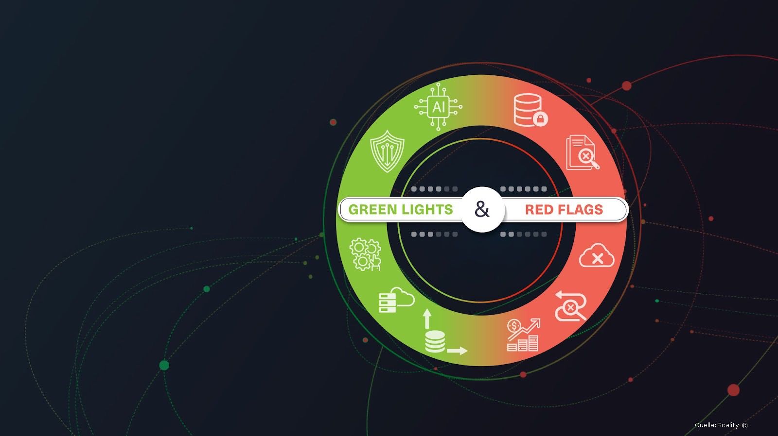 - Rote Signale warnen, wo verborgene Risiken in den Bereichen Kontrolle, Resilienz oder Governance bestehen.