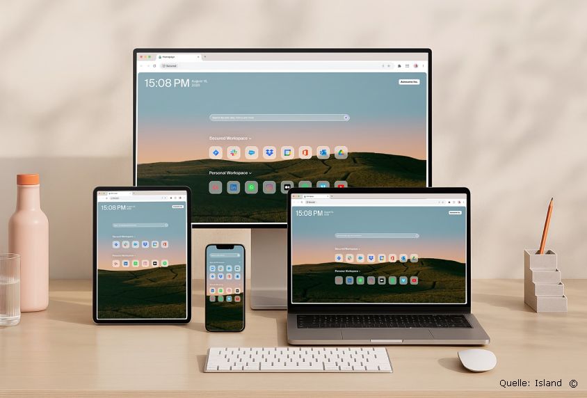 Island bietet sicheren Zugriff auf Web- und SaaS-Anwendungen. Es schützt kritische Arbeitsprozesse, unabhängig davon, ob sie intern oder durch externe Dienstleister ausgeführt werden. Es macht BYOD-Modelle praktikabel und reduziert die Abhängigkeit von komplexen virtualisierten Desktop-Umgebungen (VDI). Und es setzt Zero Trust konsequent um, weil Sicherheits- und Zugriffspolicies nicht außen herumgebaut werden, sondern im Browser selbst greifen. Unternehmen reagieren damit schneller auf neue regulatorische Vorgaben, erfüllen Compliance-Anforderungen ohne tiefgreifende Umbauten und stärken ihre Fähigkeit, Angriffe abzuwehren.