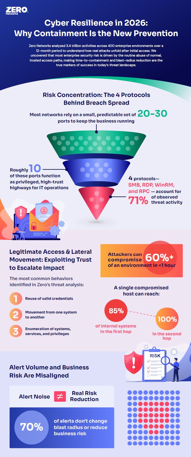 KI-gestützte Angriffe beschleunigen den ersten Zugriff. Die Daten von Zero Networks zeigen jedoch, dass die Auswirkungen auf das Unternehmen weniger davon abhängen, wie Angreifer eindringen, sondern vielmehr davon, was sie erreichen können, sobald sie dies getan haben. Da KI-gesteuerte Sicherheitsverletzungen unvermeidlich sind, besteht der einzige dauerhafte Vorteil für Verteidiger darin, die Bewegungsfreiheit der Angreifer nach dem Eindringen zu begrenzen.