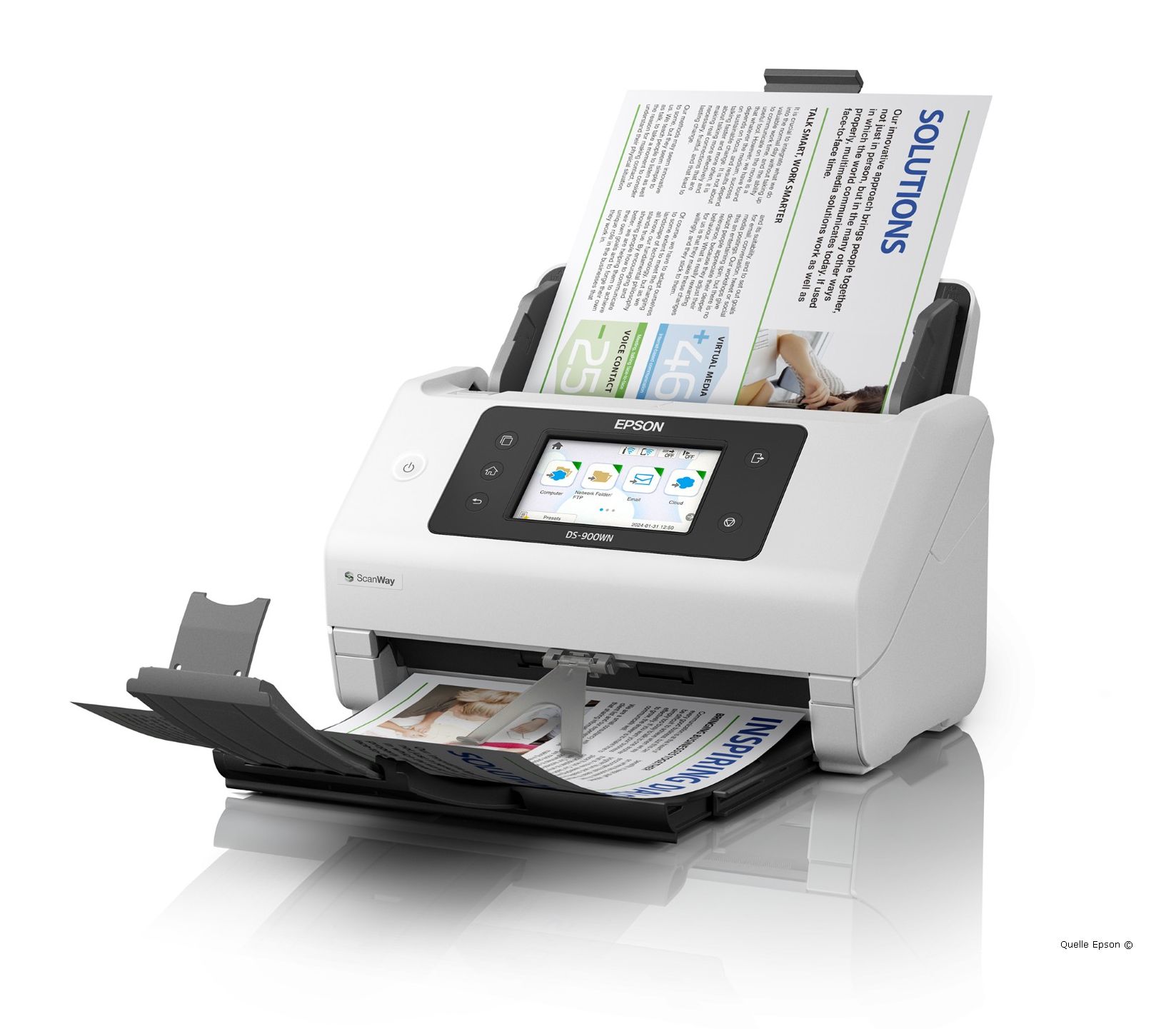 Abhilfe schaffen hier Integrationsplattformen, die als Schnittstelle zwischen der Scanner-Hardware und beispielsweise einem Dokumenten-Management-System (DMS) fungieren. Sie bereiten die digitalisierten Dokumente automatisiert auf, reichern sie mit Metadaten an und überführen sie nahtlos in digitale Prozesse. Aus diesem Grund hat Epson seine neuen Dokumenten-Scanner mit Open Platform ausgestattet – einer Technologie, die es erlaubt, die Geräte direkt aus einer Anwendung heraus an individuelle Arbeitsprozesse anzupassen. Anwender können so innerhalb etablierter Arbeitsabläufe auch komplexe Prozesse mit nur einem Knopfdruck starten. Zudem lassen sich bei Bedarf neue Funktionen einbinden. Das individuell konfigurierbare Scanner-Display reduziert manuelle Arbeitsschritte, gewährleistet die Datensicherheit und eliminiert gleichzeitig potenzielle Fehlerquellen. Nicht zuletzt können sämtliche Scanner über eine Integrationsplattform zentral administriert werden, was die IT-Abteilung entlastet.