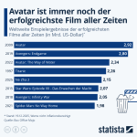 »Avatar – Aufbruch nach Pandora« ist immer noch der erfolgreichste Film aller Zeiten. Der 2009 erschienene Film über die außerirdischen Naavi, die sich gegen die Ausbeutung ihres Planeten durch die Menschen wehren, spielte weltweit an den Kinokassen fast drei Milliarden US-Dollar ein (nicht inflationsbereinigt). Ähnlich erfolgreich war bislang nur »Avengers: Endgame«. Nicht ganz so erfolgreich,…