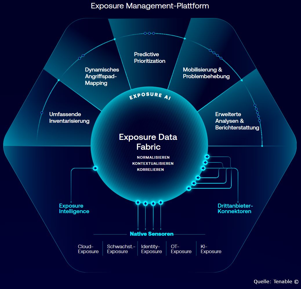 Tenable hat es sich seit jeher zur Aufgabe gemacht, Unternehmen dabei zu helfen, Risiken zu erkennen und zu reduzieren. Zu Beginn ging es darum, Schwachstellen in traditionellen IT-Umgebungen zu identifizieren, aber mit der Ausweitung der Angriffsfläche wuchsen auch die Kompetenzen von Tenable. Heute bietet die Exposure-Management-Plattform Tenable One den umfassendsten Einblick in Risiken auf der gesamten modernen Angriffsfläche – einschließlich KI, Cloud, IT, Identitäten, Drittanbieter, Web-Apps und OT – und zeigt Unternehmen, wo sie gefährdet sind und wie sie diese Lücken schnell schließen können.